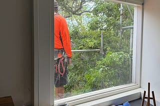 It’s been three long, very long weeks, but the scaffolding finally came down around the house this morning.